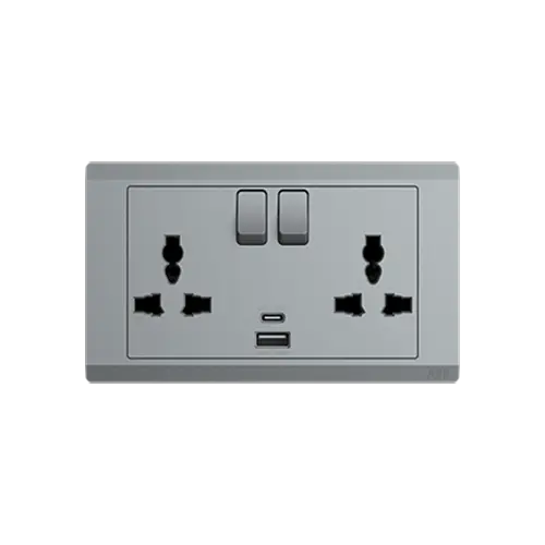 ABB Inora 2 Gang 13A Switched Multi-Socket SP with USB,TYPE A+C