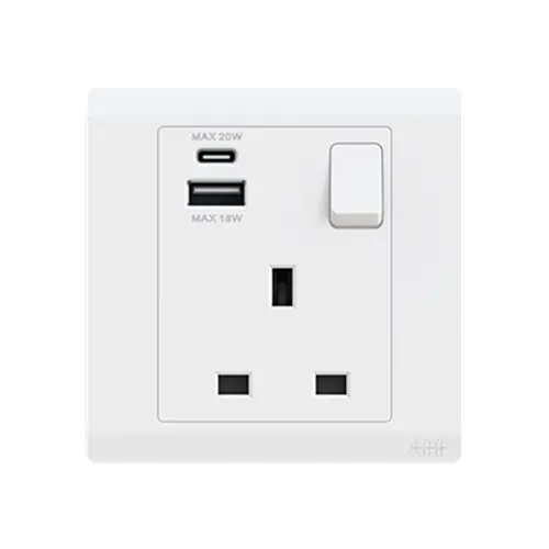 ABB Inora 1 Gang 13A Switched Socket DP with USB, Type A+C