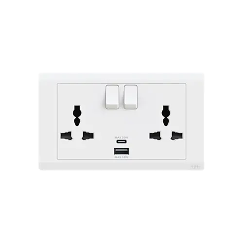 ABB Inora 2 Gang 13A Switched Multi-Socket SP with USB,TYPE A+C